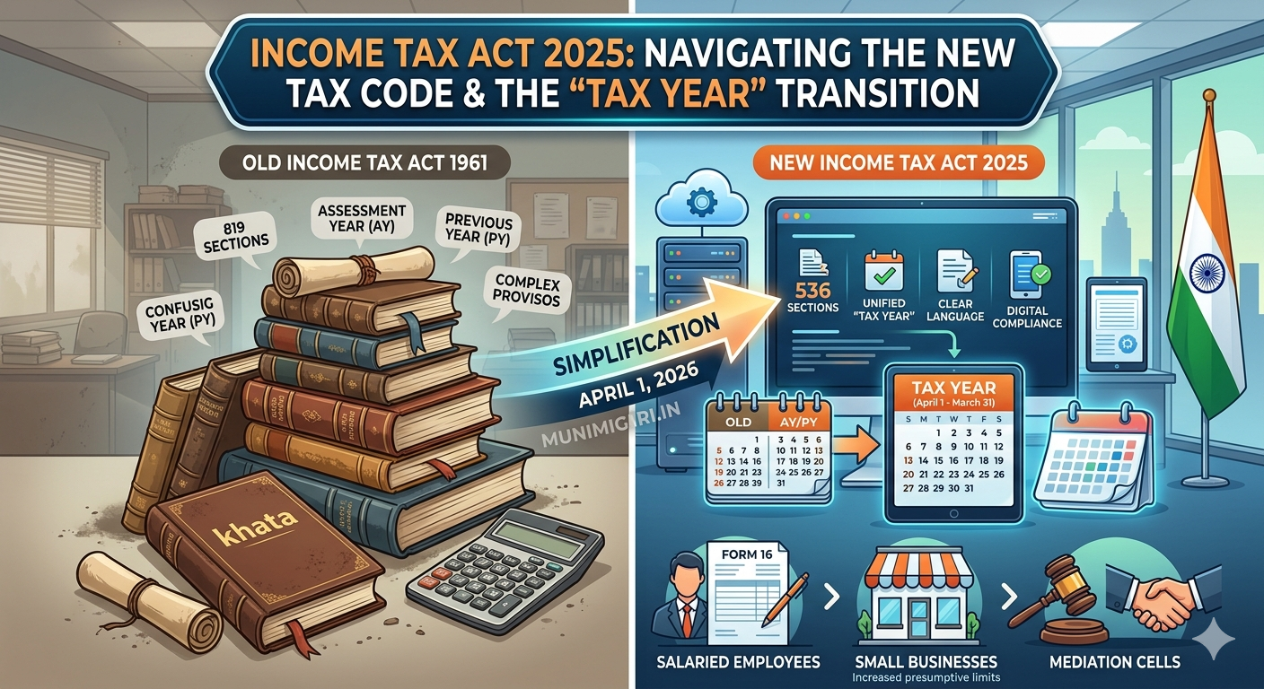 One of the most radical shifts in this new act is the elimination of the dual-timing system—the “Previous Year” and “Assessment Year”—in favor of a single, unified “Tax Year.” In this comprehensive guide, Munimigiri breaks down every detail you need to know to stay compliant and tax-savvy in 2026.