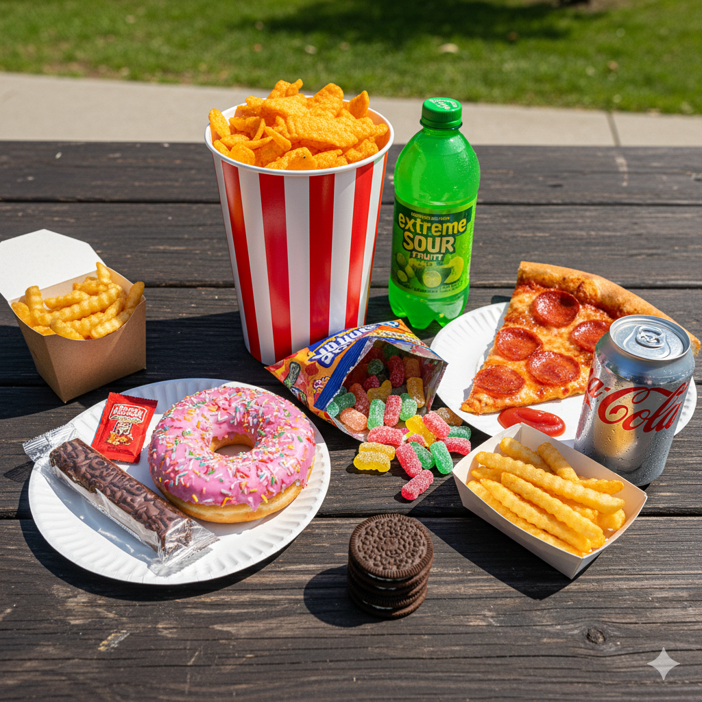 - Examples: Sodas and energy drinks, packaged snacks (chips, crackers, sugary cereals), fast-food products, instant noodles, most packaged baked goods, candies, and many mass-produced ready meals.
